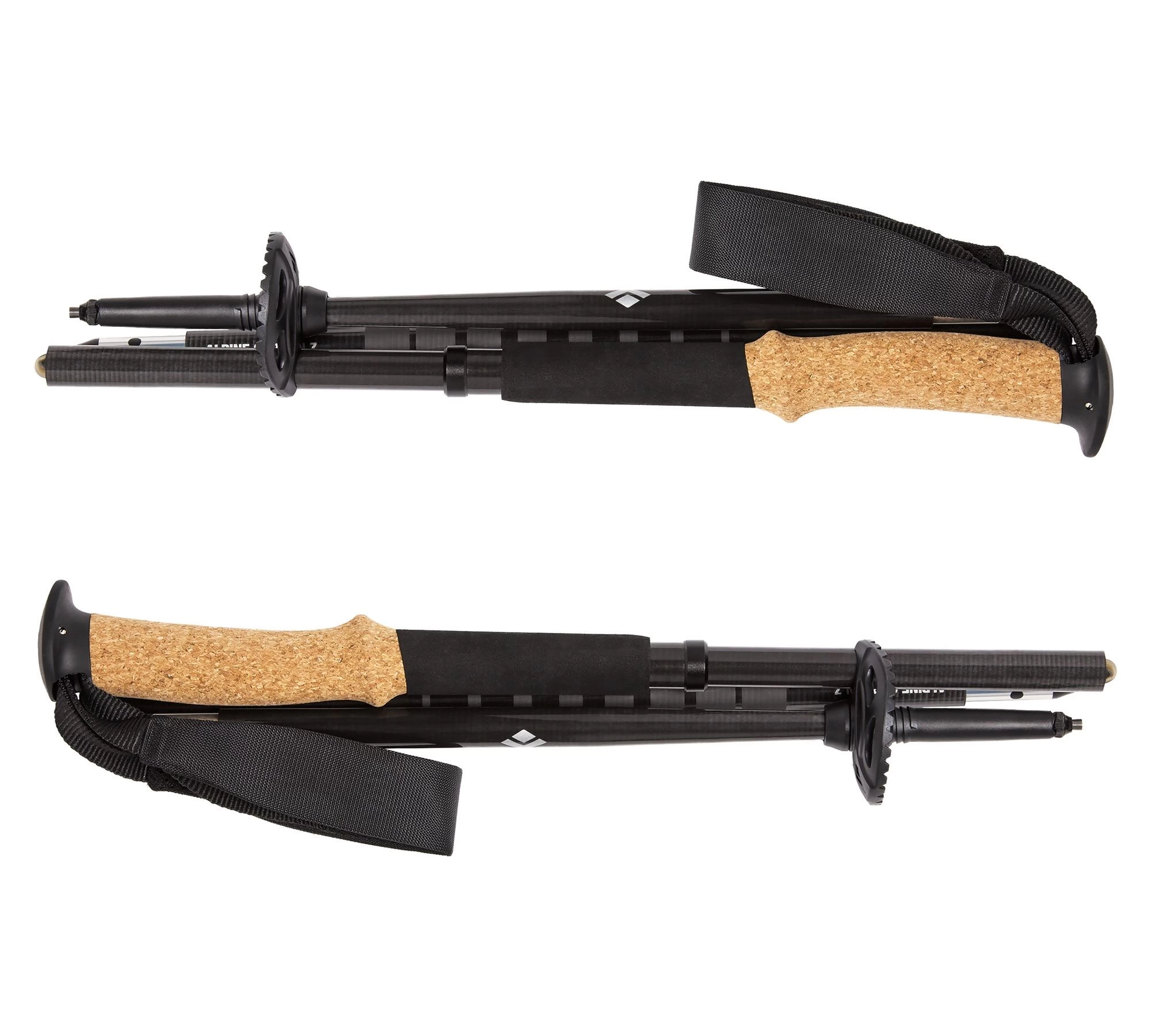 Black Diamonds durable, four-season, carbon trekking pole now has improved joint support and increased durability, making the Alpine Carbon Z-Pole a strong yet ultralight pole for mountain missions. Simply grab the grip and the first shaft section, and pull them away from each other. The pole will snap into place and lock. Each Speed Cone guides a shaft section into place, and stiffens the joint when the pole is locked. Protective, flexible tube ends cover the pole’s Kevlar® center cord when folded.