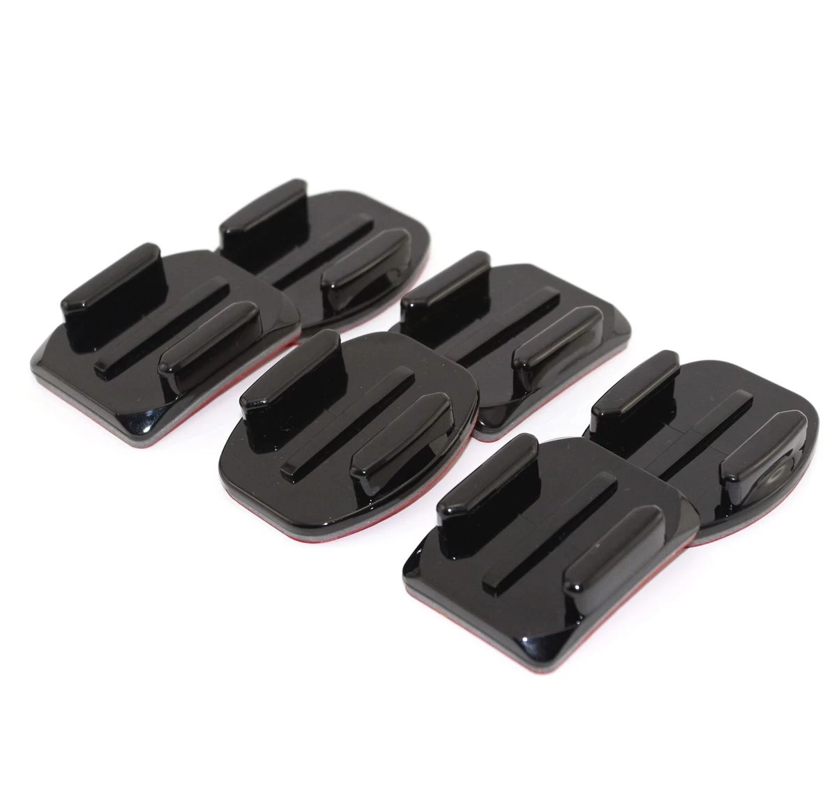 Attach your GoPro camera to flat and curved surfaces with these industrial strength waterproof adhesive mounts. Can be removed when heat (from a hairdryer) is applied.