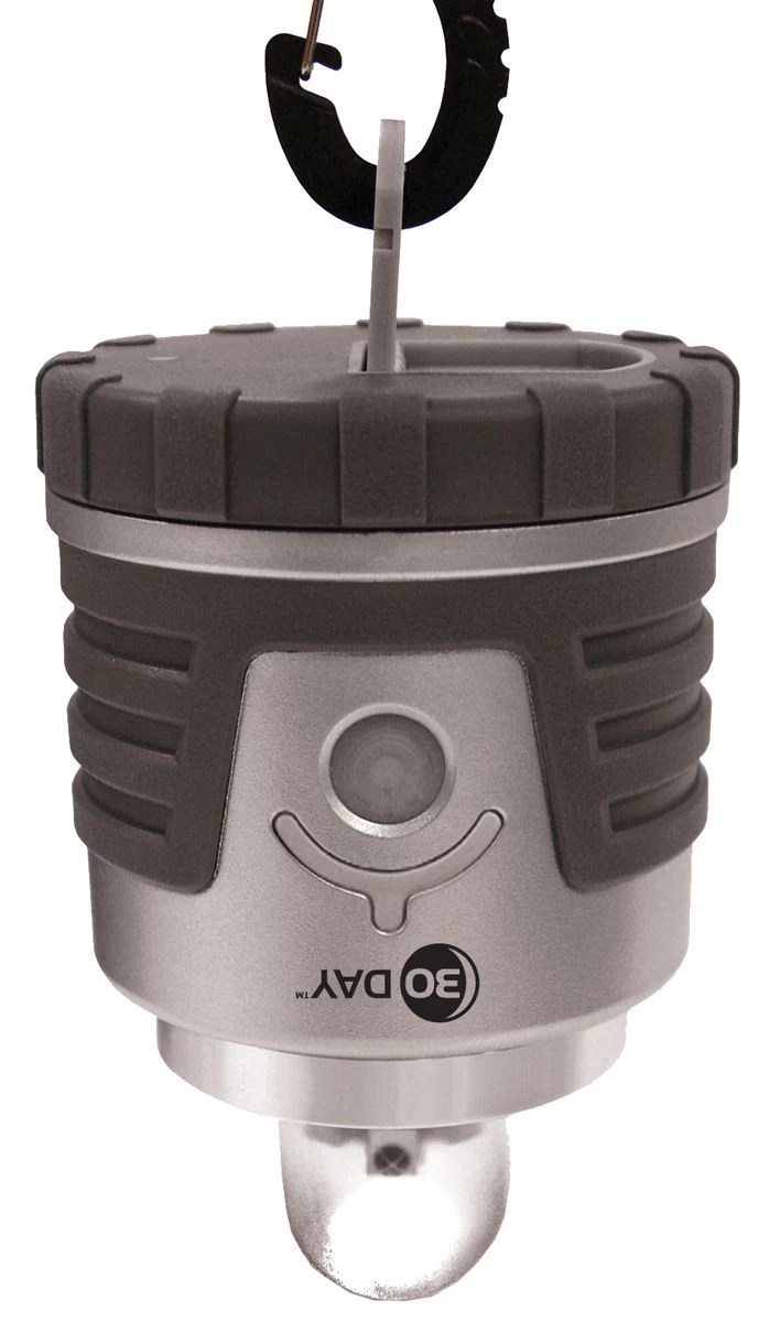 The LED Lighting 30 Day Lantern is the perfect base camp or tent lamp. The light is way bright, burning up to about 300 Lumens and can run on Low for 30 Days or on High for 32 Hrs, which is awesome! It comes with four major lighting modes: High, Medium, Low, and SOS (National SOS Distress Signal). One of the awesome features about this light is the bulbs that it uses. The 3 Nichia White LED’s are lifetime guaranteed and are unbreakable and will never need to be replaced. Another is the built in clip on the bottom of the lantern. It works perfect in tents or any other scenario where you could hang it.