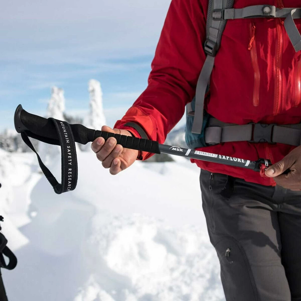 The DynaLock Explore Pole offers 3-section packability and the reliable strength of full aluminum construction, making it a versatile pole for snowshoers and mountaineers tackling everything from local hikes to distant expeditions. The pole’s dual DyanLock mechanisms offer a full range of length adjustment, along with the confidence of tool-free tensioning—which allows the clamping force to be adjusted on the fly. With both powder and trekking baskets, DynaLock Explore poles are primed for all-mountain, all-season exploration.